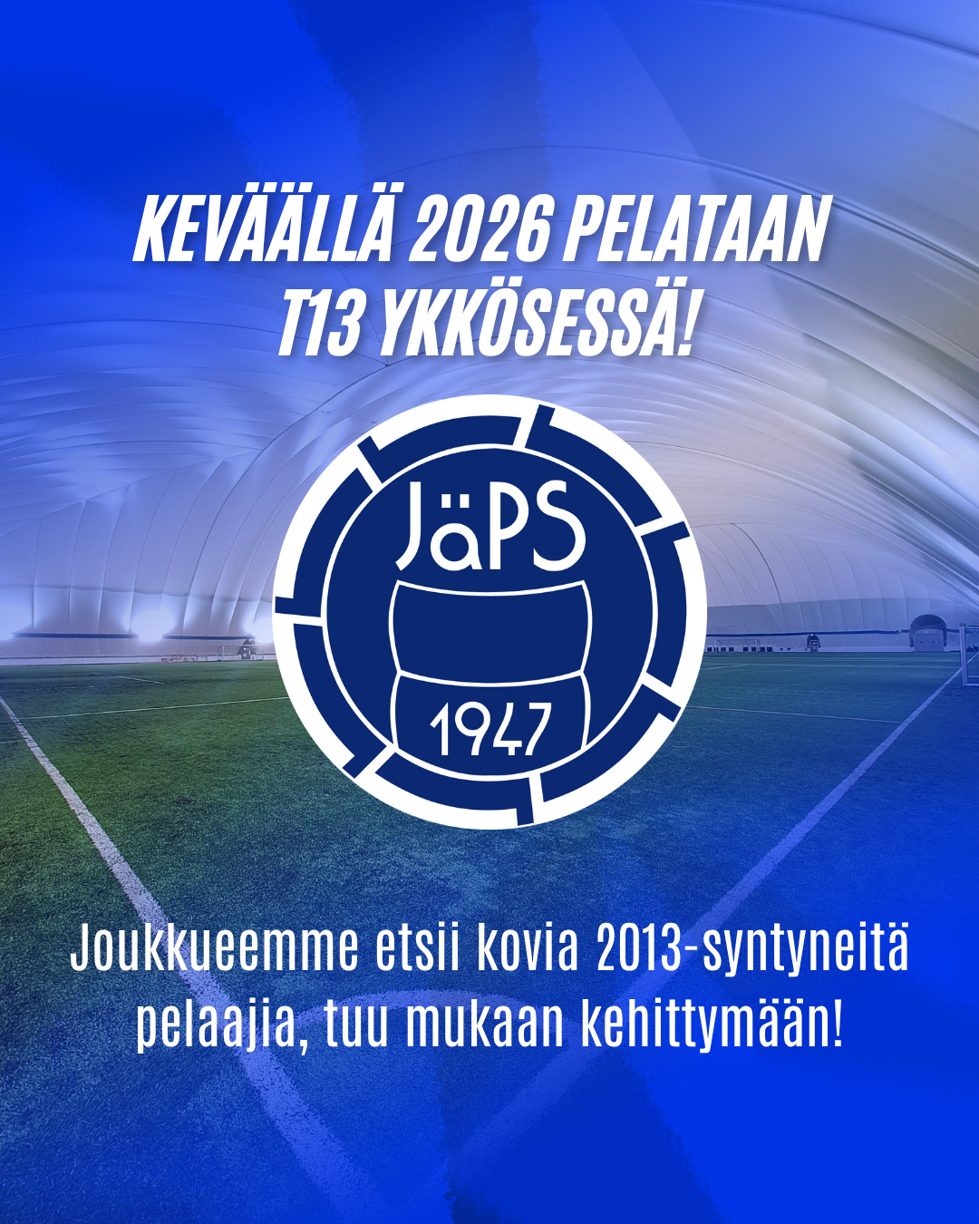 JäPS T2013 -ikäluokassa jokaisella on mahdollisuus kehittyä omalla tasollaan ja tiivis yhteistyö viereisten ikäluokkien kanssa tukee pelaajien polkua kohti omia unelmia! Pelaamme keväällä 2026 T13 Ykköstä, T13 Kolmosta ja T13 Vitosta, joten peliaikaa tulee jokaiselle riittävästi ja sopivilla tasoilla.