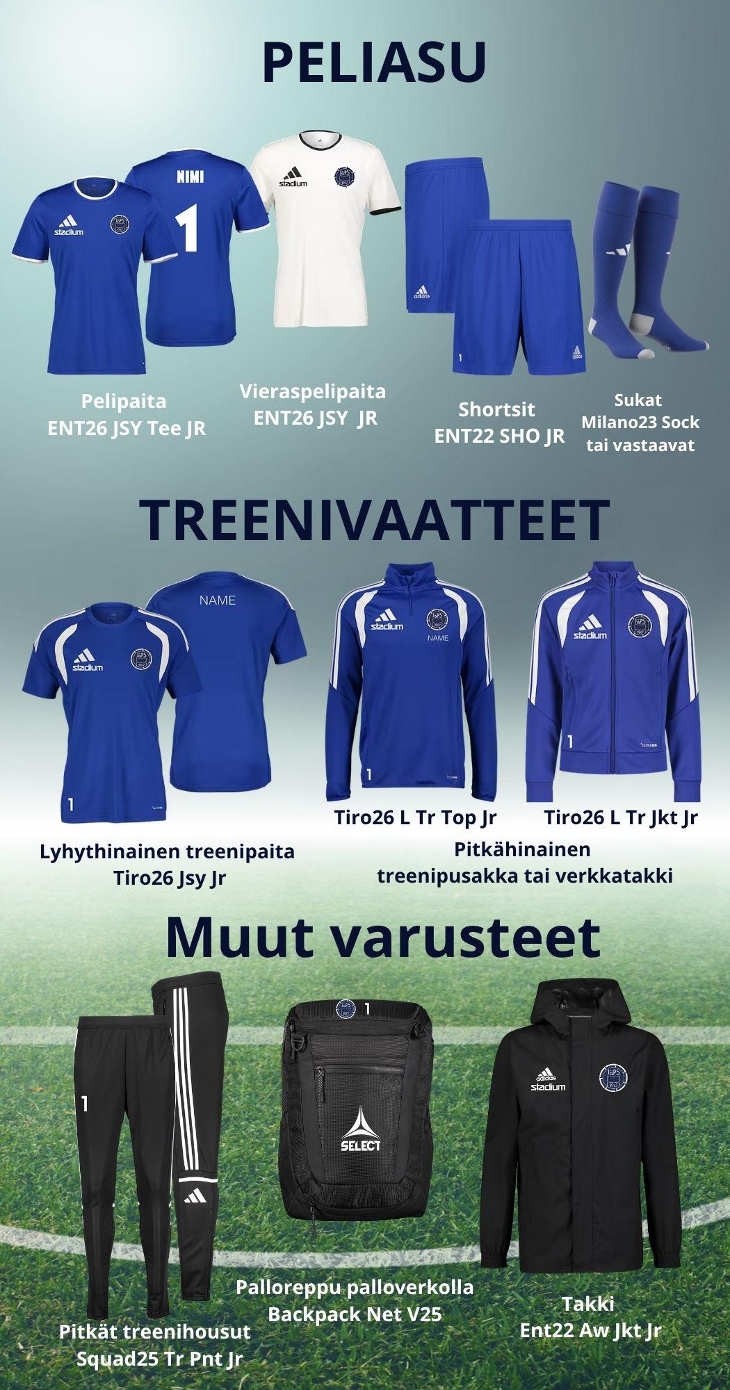 sininen pelipaita ja valkoinen vieraspelipaita sisältää painatukset logo, pelinumero ja ETUNIMI (Pelinumero ja nimi syötettävä itse Stadiumilta suoraan tilattaessa tilaukselle.)