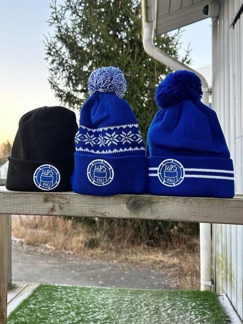 JäPS tupsupipo | 20,00 | sininen neulepipo isolla tupsulla, kolme mallia |